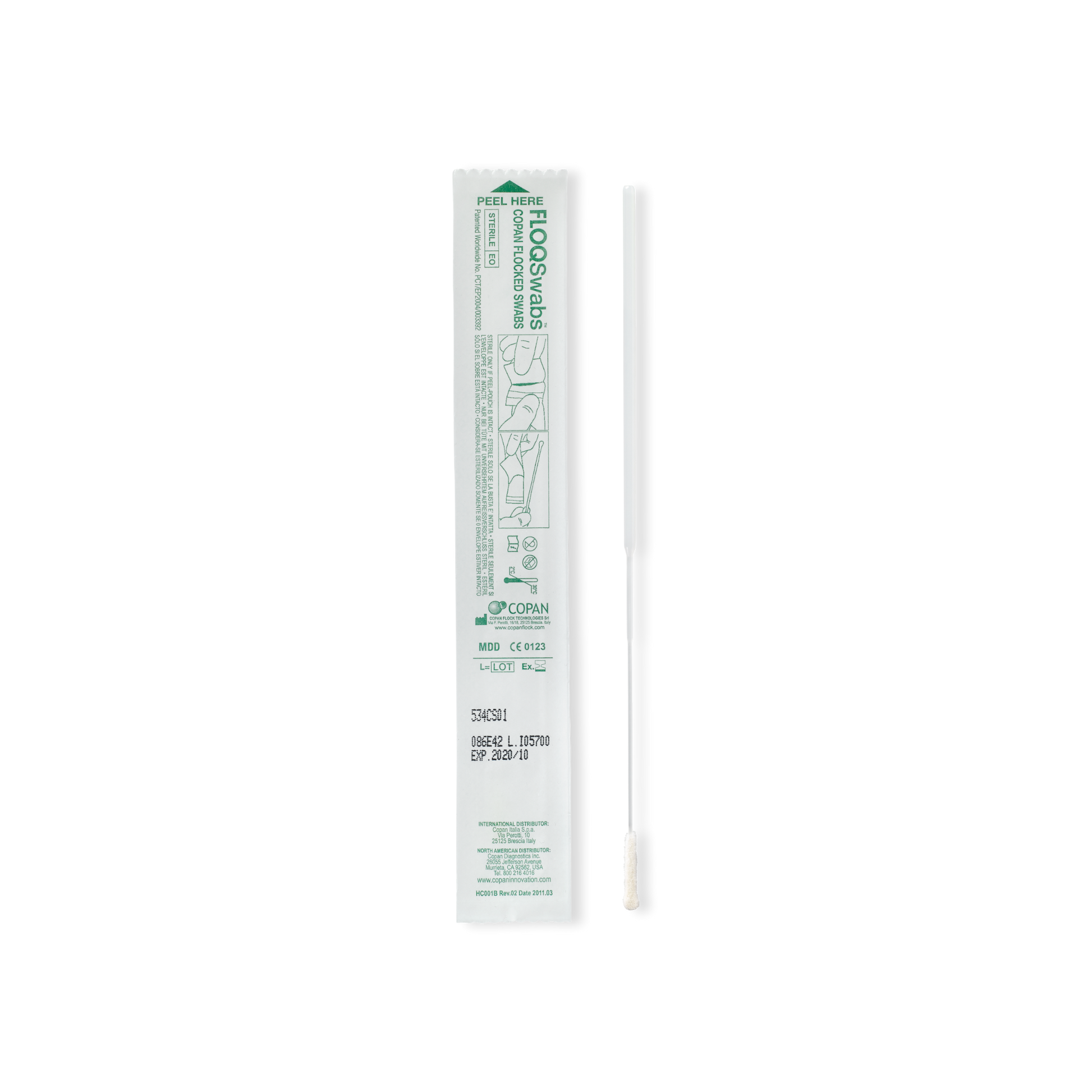 Single Flexible Minitip Size Nylon® Flocked Swab with No Breakpoint in Peel Pouch - Individually Packaged, Sterile