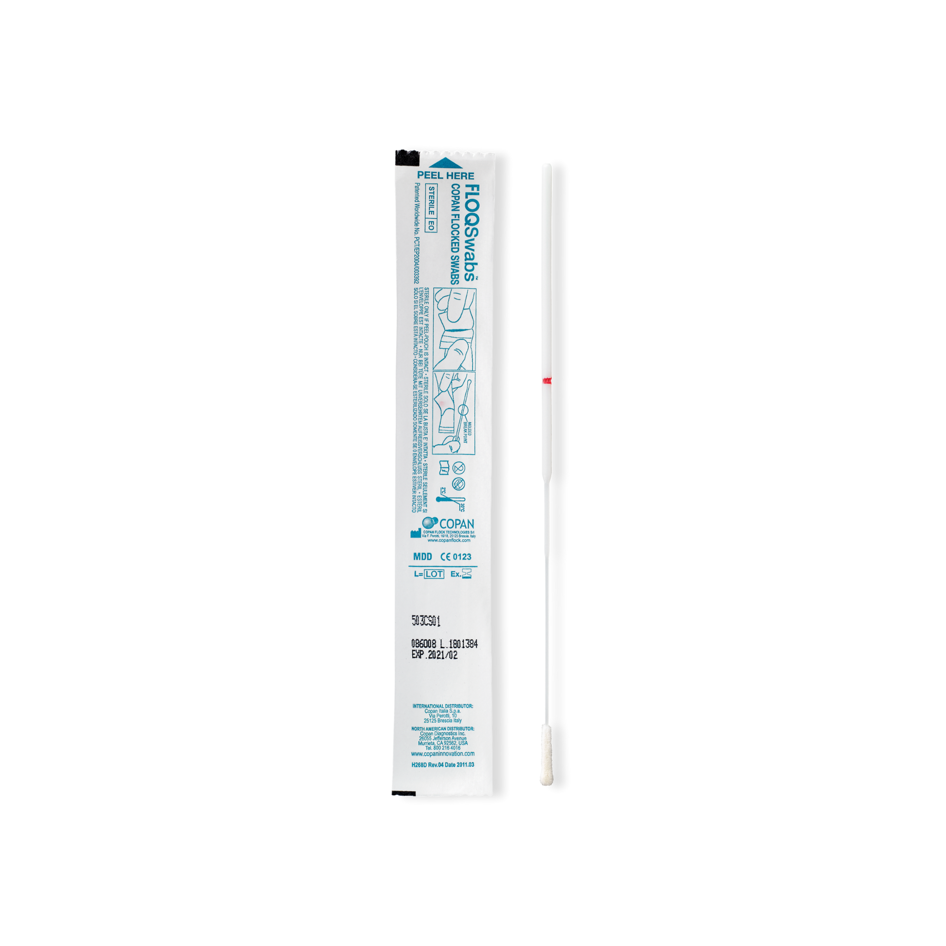 Single Flexible Minitip Size Nylon® Flocked Swab with 100mm Breakpoint in Peel Pouch - Individually Packaged, Sterile