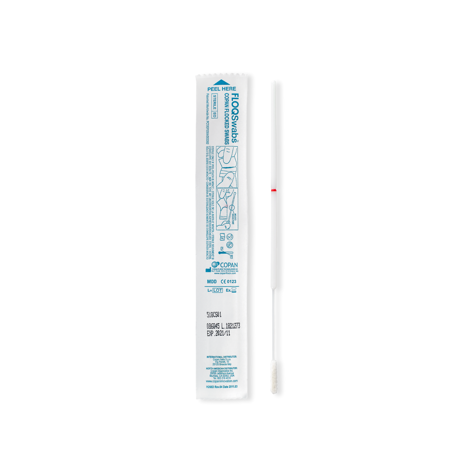 Single Minitip Size Nylon® Flocked Swab with 100mm Breakpoint in Peel Pouch - Individually packaged, Sterile